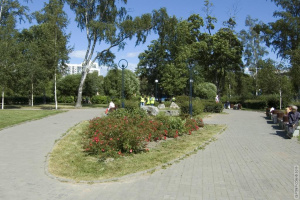 На территории сада располагается два озера c чистейшей водой, одно из которых имеет форму пышки, с островом посередине, поросшим осинами, а второе - небольшое круглое, заросшее водорослями. Проложены дорожки и установлены лавочки. Рядом со Светлановским проспектом сделана большая детская площадка.